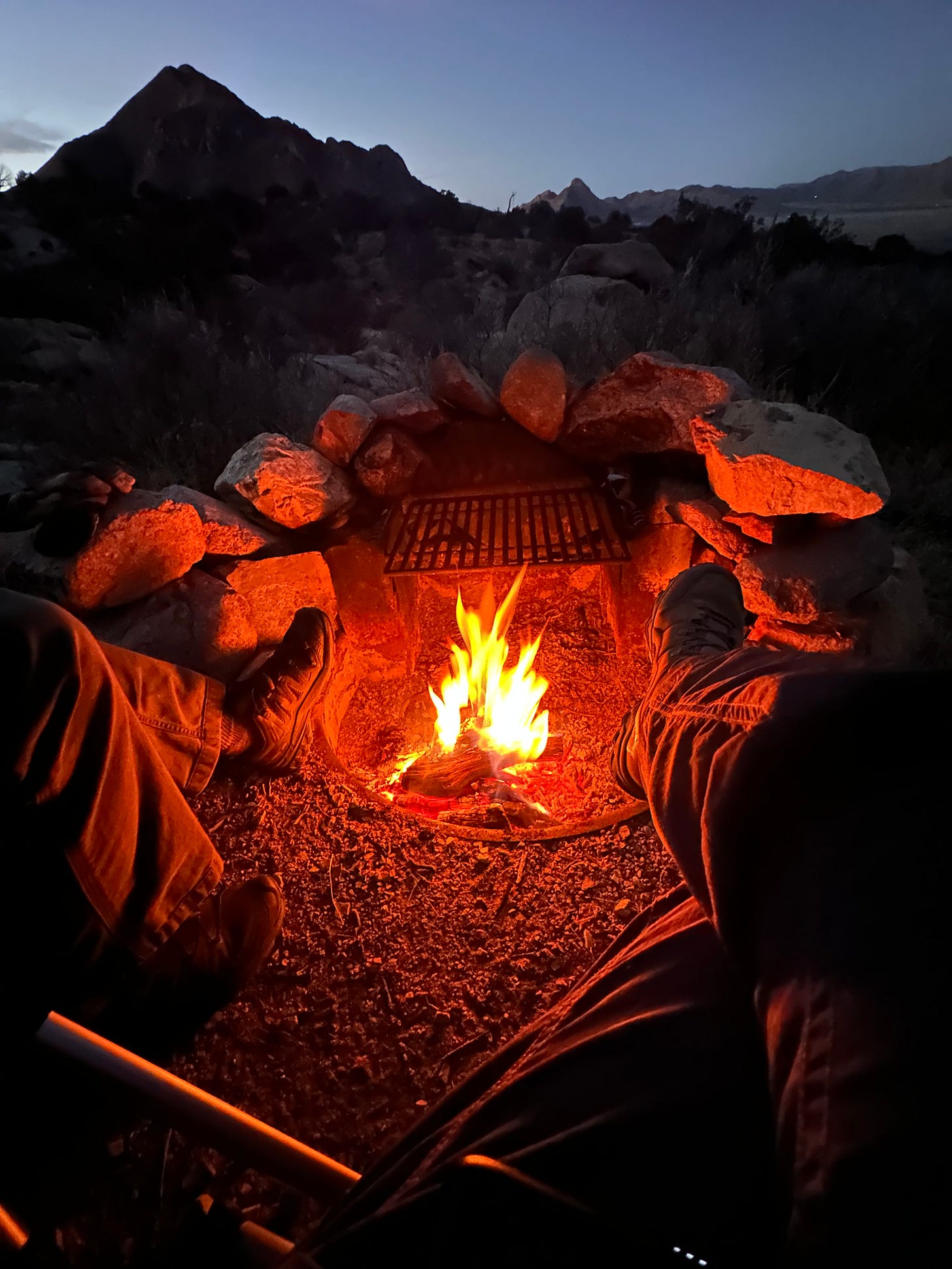 I am the beneficiary of this obsession. Most nights we have beautiful campfires. It extends our time outside— while the days can be warm, desert evenings can see temperatures drop anywhere from 10-25 degrees once the sun goes down.